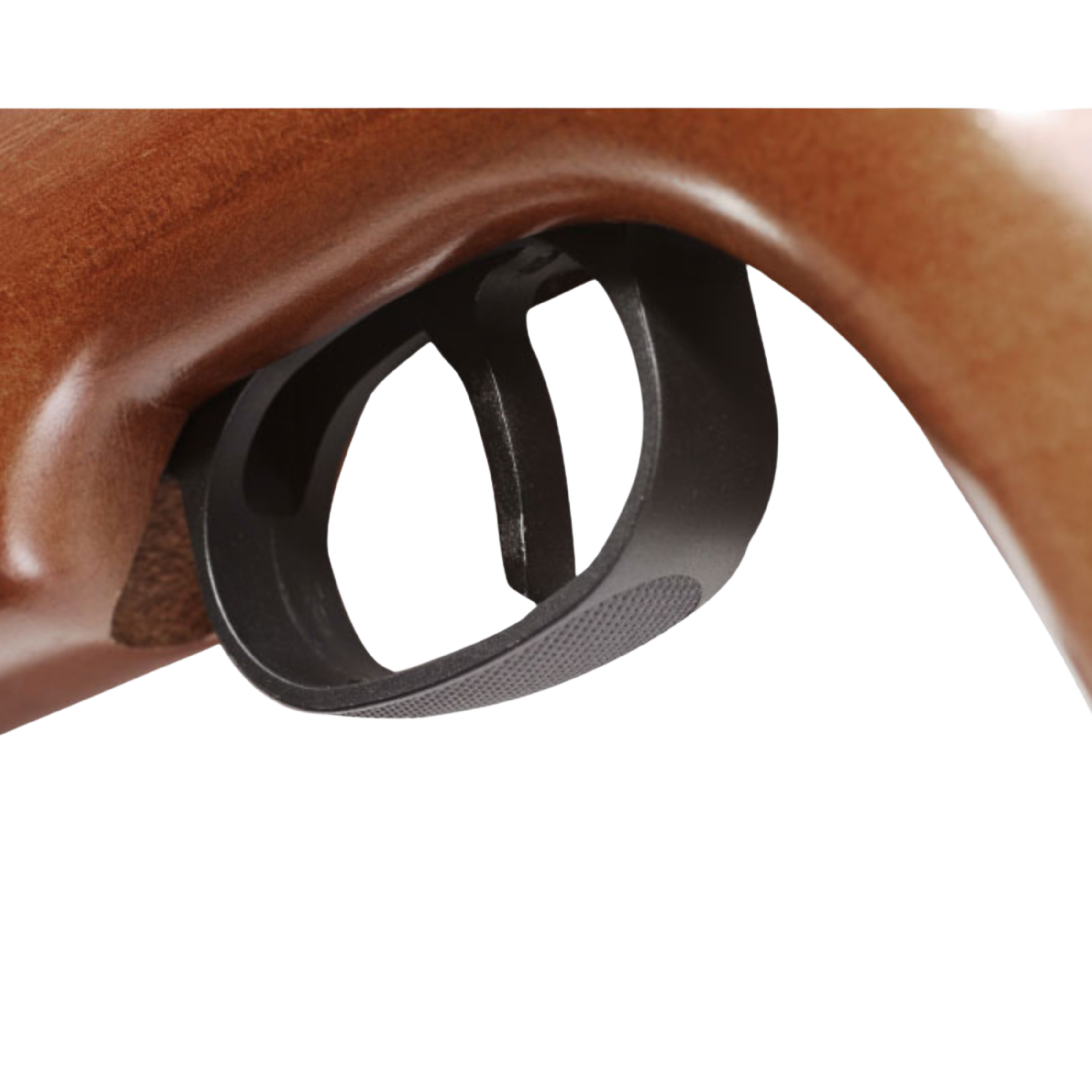 Este Ruger® Air Hawk fue probado por la revista Hard Air Magazine y designado como un rifle de aire comprimido Hard Air Magazine Gold Award en base a su riguroso proceso de prueba. Puede ver la reseña del Ruger® Air Hawk en el sitio web de Hard Air Magazine haciendo clic en la imagen de la derecha para averiguar qué lo convirtió en un rifle de aire comprimido Gold Award. El Ruger® Air Hawk es un rifle de perdigones de 1000 pies por segundo con un mecanismo de amartillado de un solo disparo. Este rifle de aire comprimido con cañón de quiebre de resorte tiene un cañón pavonado estriado y un receptor y está elaborado con madera dura oscura que tiene una forma elegante en una culata ambidiestra adecuada tanto para tiradores diestros como zurdos. El rifle Air Hawk está equipado con miras de fibra óptica, un gatillo ajustable y un freno de boca. Cuando se coloca este rifle de aire comprimido Ruger® al hombro, notará un agarre cómodo, un seguro automático convenientemente ubicado y una almohadilla de retroceso de goma. El Ruger® AirHawk también viene con una mira telescópica 4×32 que está hecha para soportar la acción de doble retroceso producida por los rifles de aire comprimido.