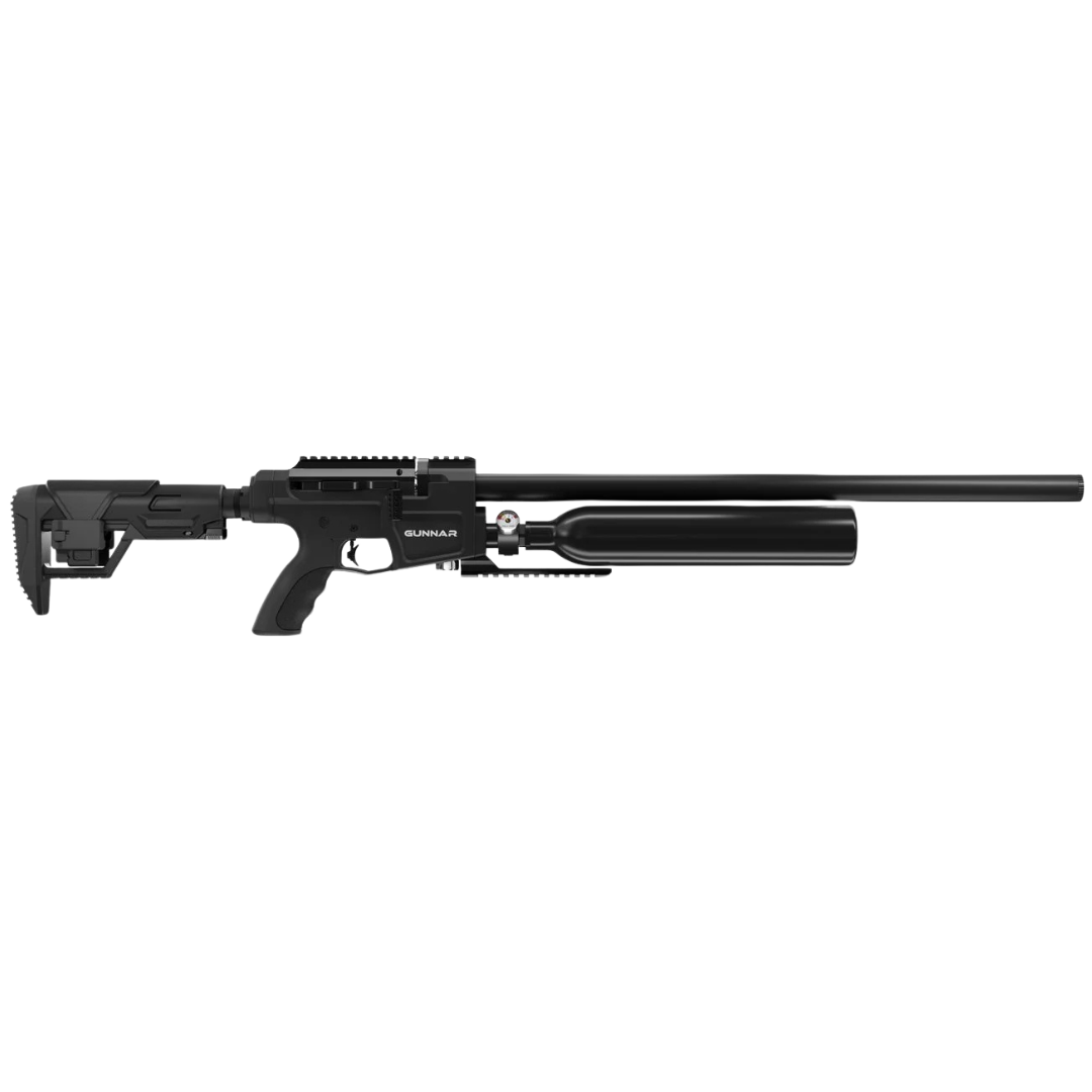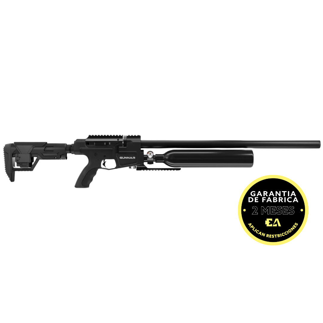 El Gunnar viene en modelos de calibre .22 y .25, que ofrecen velocidades sorprendentes de hasta 1000 FPS (32 FPE) y 900 FPS (50 FPE) respectivamente. El Gunnar es un rifle de aire comprimido ideal para la caza menor y de alimañas, el control de plagas y el tiro al blanco.