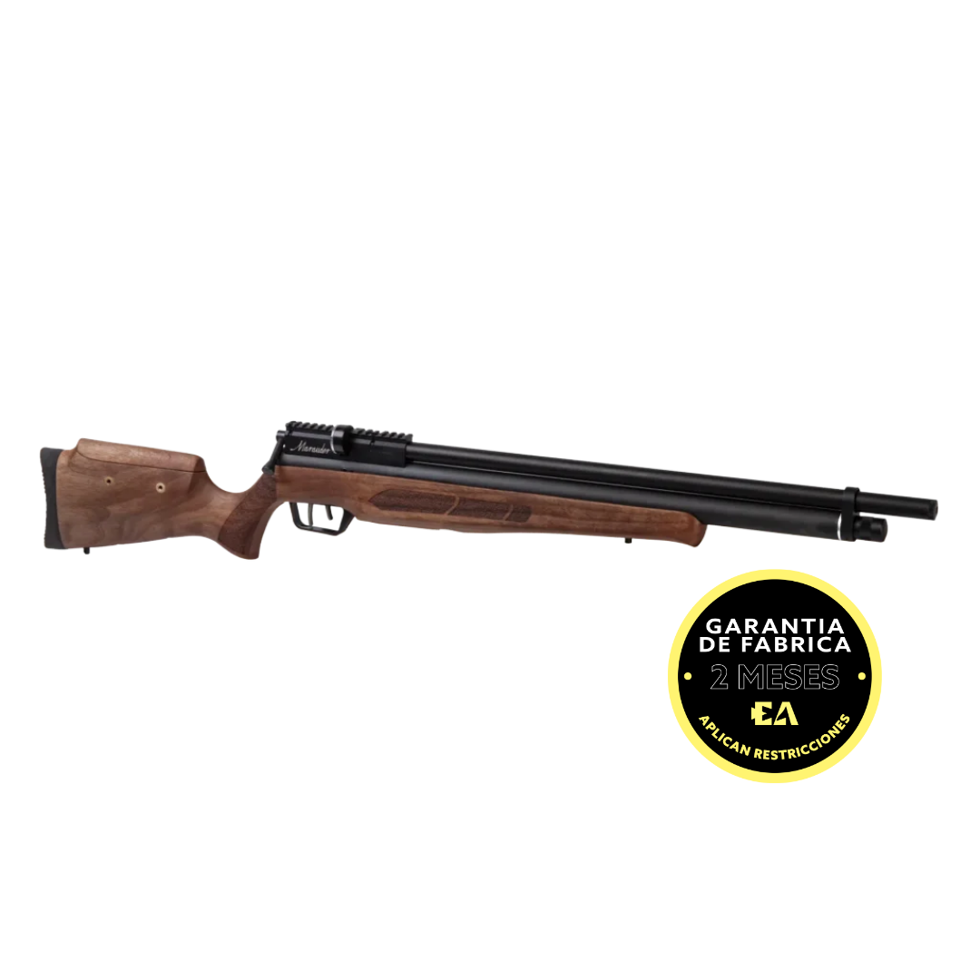 El rifle PCP Marauder .22 es un clásico moderno en el mundo de las armas de aire comprimido. Desde su creación, el rifle de aire comprimido Benjamin® Marauder PCP (Pre-Charged Pneumatic) ha sido un icono en la comunidad de cazadores. Este rifle de aire comprimido cuenta con un regulador integrado para una uniformidad de disparo a disparo, un cañón revestido, supresión de sonido integrada, un cargador de 10 balas y una recámara Picatinny. Tiene una culata de nogal turco equilibrada con una carrillera elevada ajustable y una manija de cerrojo reversible. El Marauder lanza perdigones de calibre .22 a una velocidad de hasta 1000 fps con hasta 80 disparos regulados por carga.