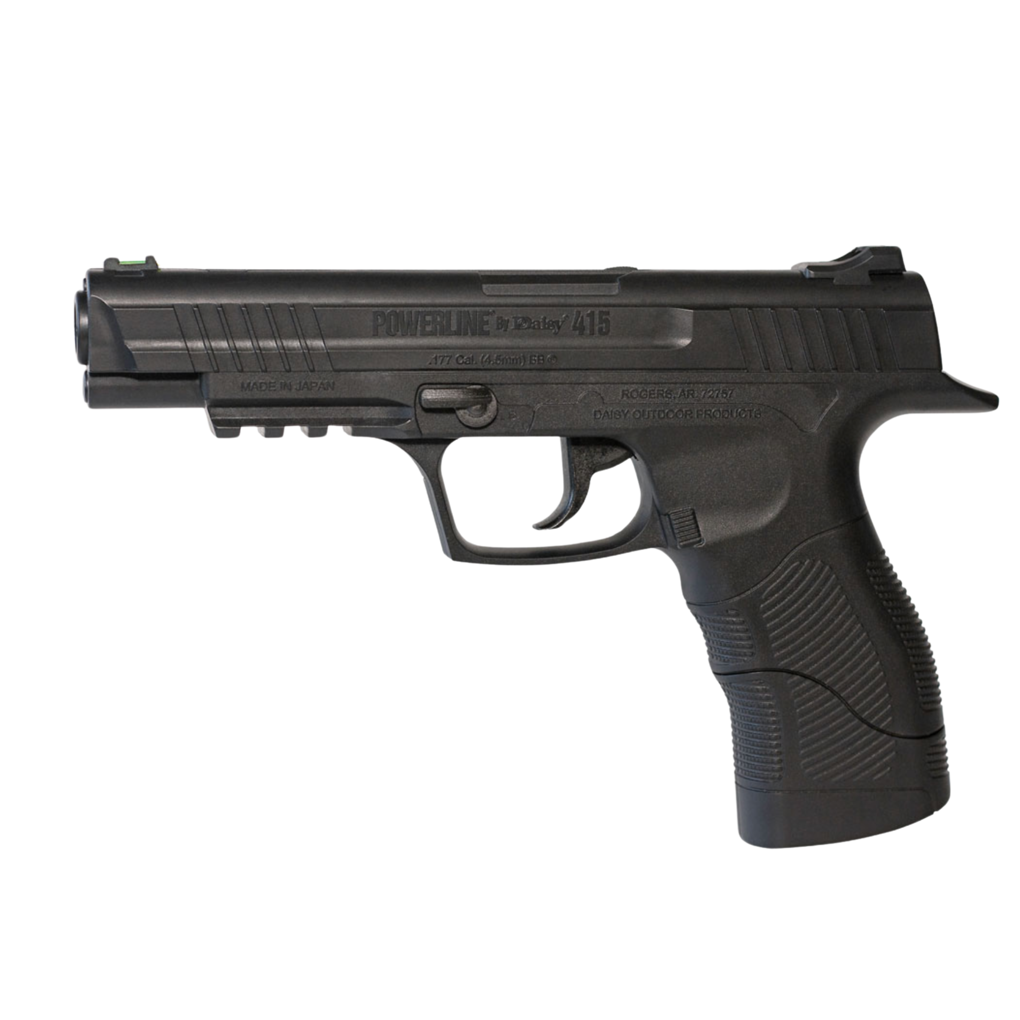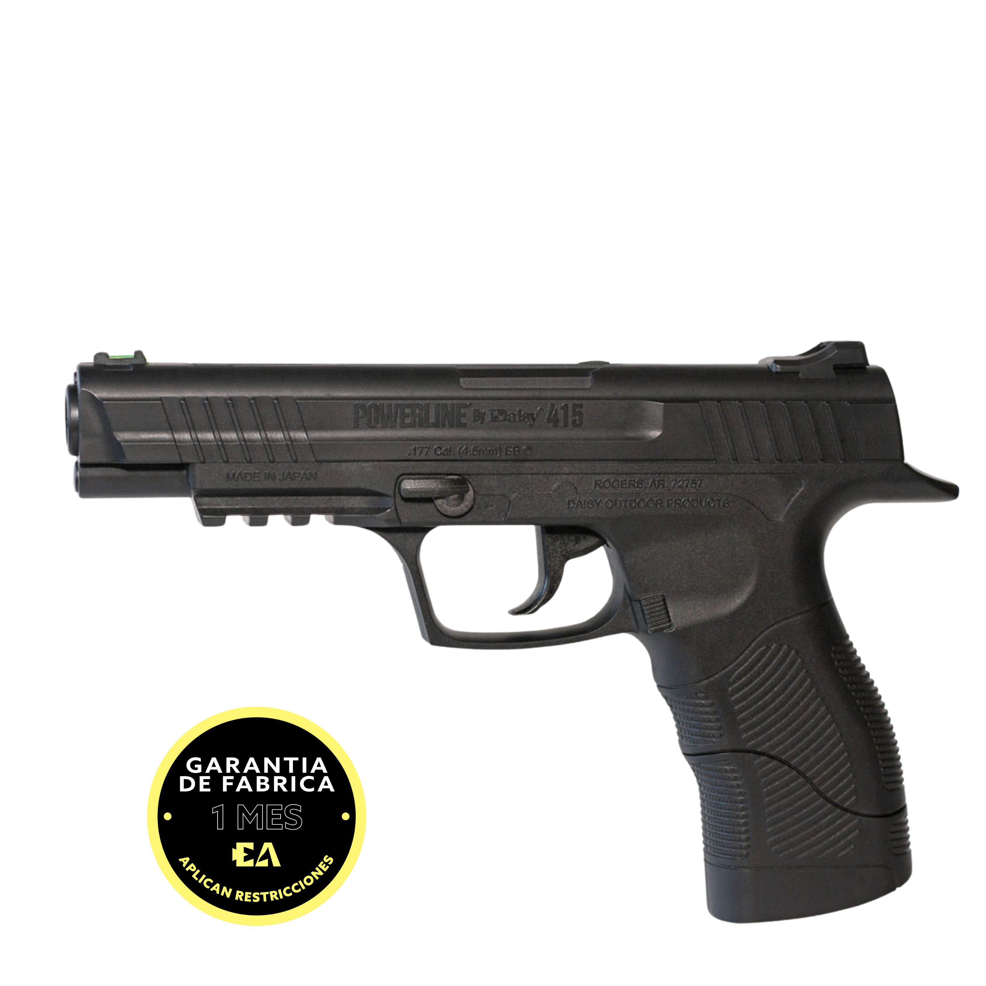 La Daisy 415 es una pistola de aire comprimido semiautomática diseñada para ofrecer precisión y un manejo cómodo. Alimentada por un cartucho de CO₂ de 12 g, esta pistola dispara BBs de acero calibre 4.5 mm (.177) con una velocidad impresionante, ideal para tiro recreativo y entrenamiento.