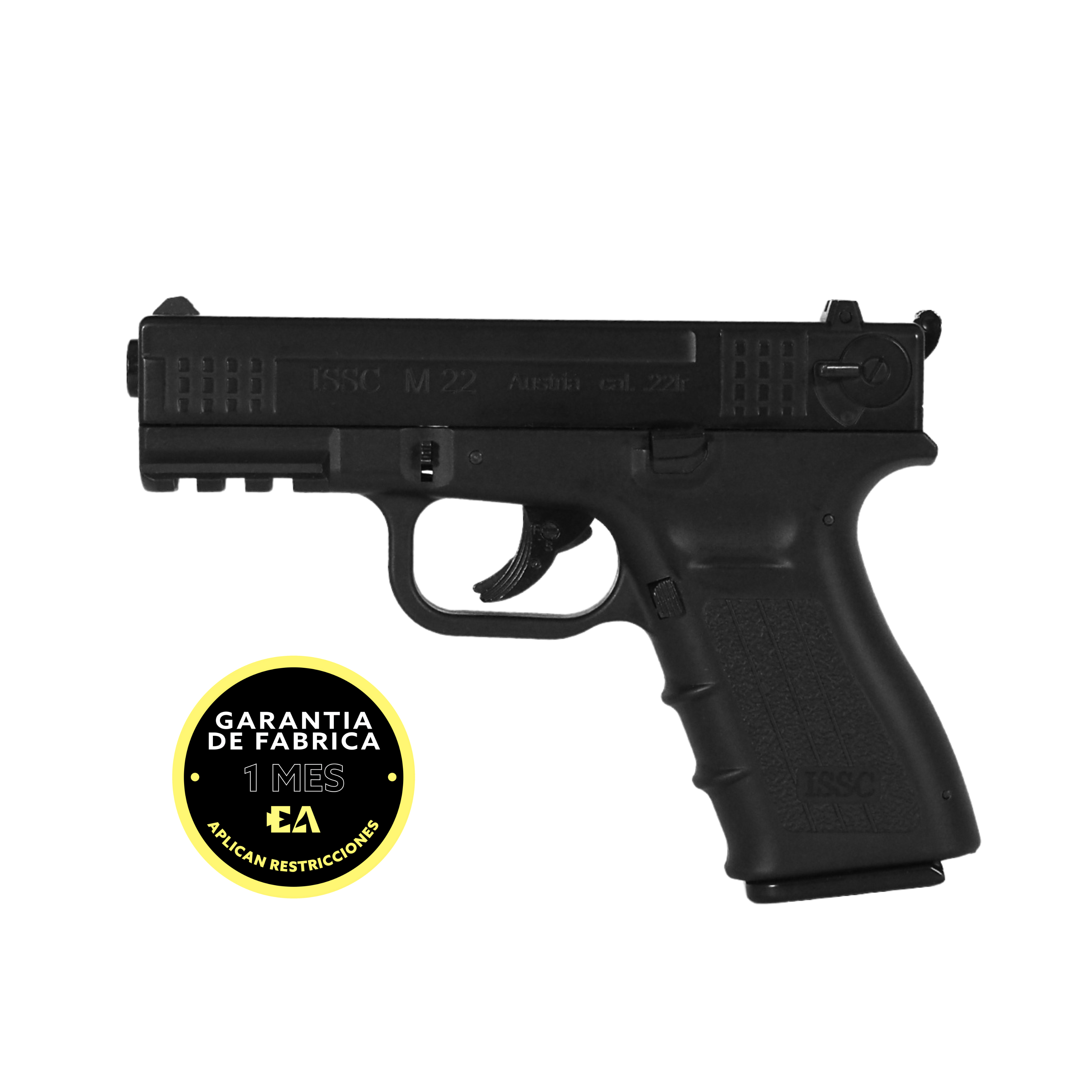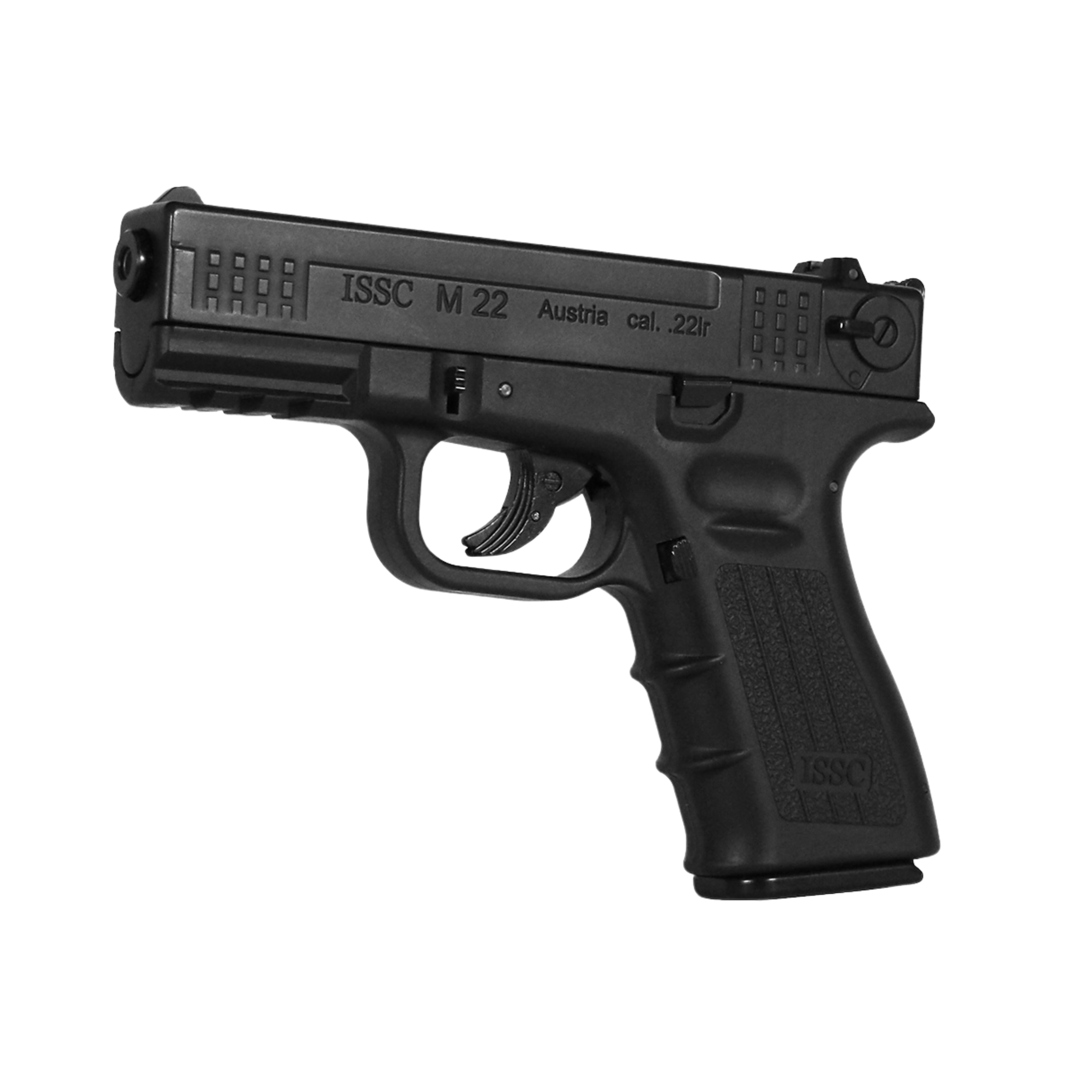 La ISSC M22 de ASG es una pistola de aire comprimido semiautomática con un diseño realista y un potente retroceso. Funciona con un cartucho de CO₂ estándar de 12 gramos, el cual se almacena en el cargador para un rendimiento óptimo.